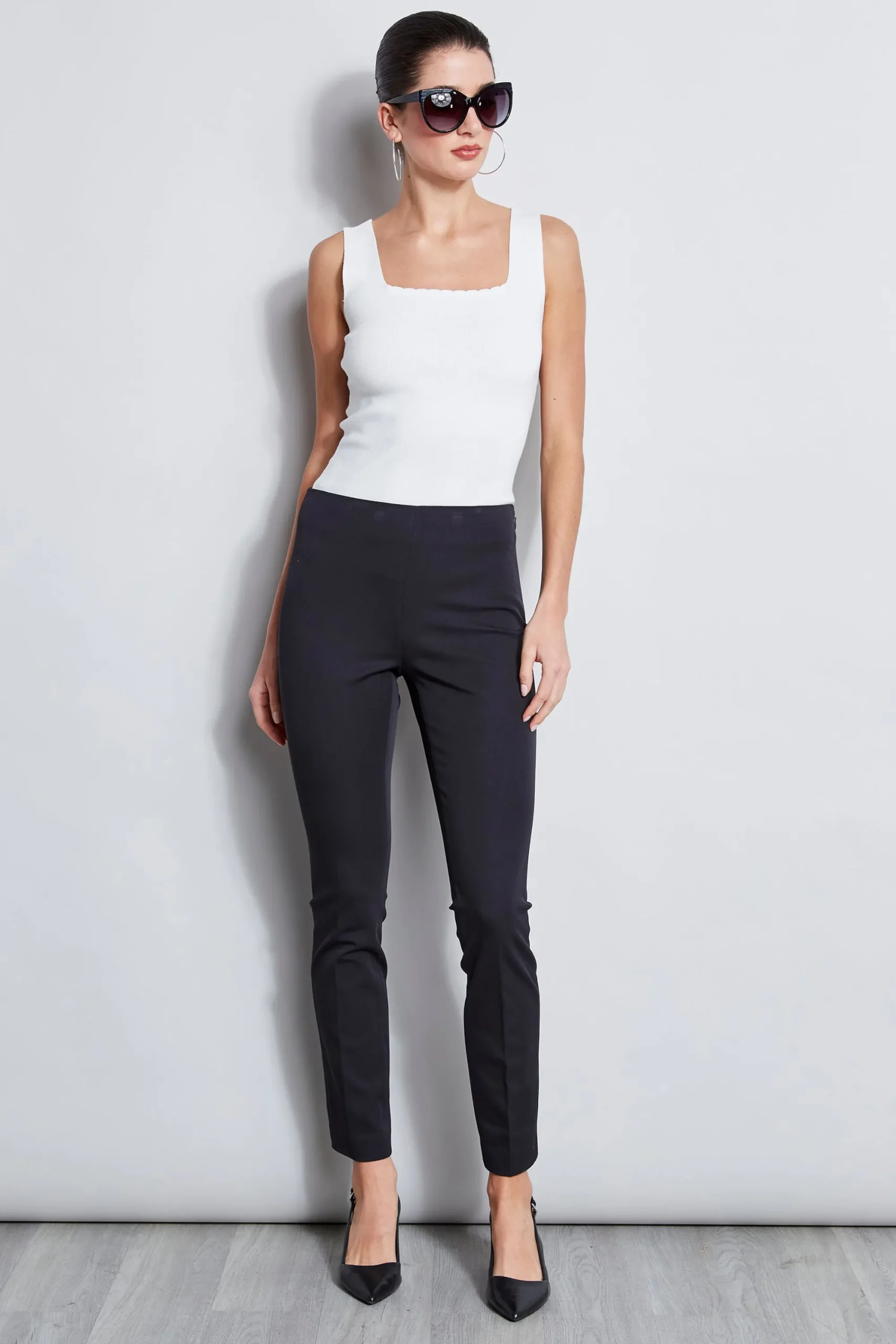 This slim-fit long pant is an essential in our Iconic Stretch Cotton Blend. Elie Tahari Exclusive Skinny Pants crafted in our signature Stretch Cotton Blend 58% Cotton, 38% Rayon, 4% Elastane Skinny Fit; Runs true to size. Model is 5’10” and wearing size 2 Measurements: 10″L front rise 29.25″L inseam (approx length for a size 28) Wear with: Winny Jacket Dry Clean Only Imported Style #: EU8M020U