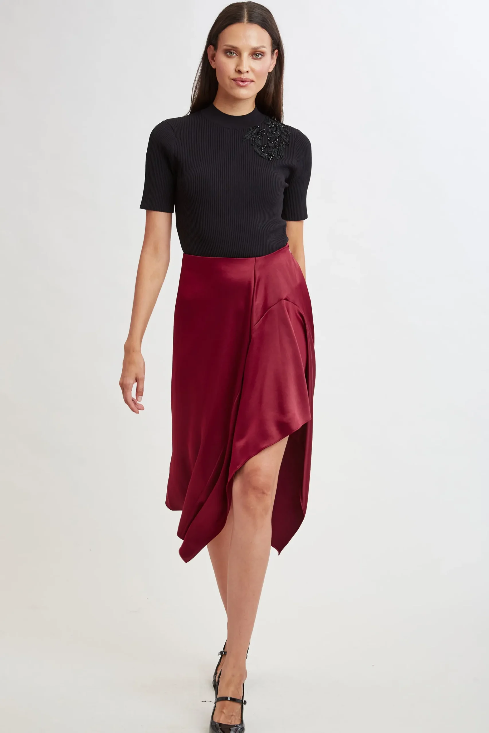 Indulge in the fluid elegance of our Asymmetric Hem Satin Midi Skirt. The skirt drapes beautifully and moves gracefully …