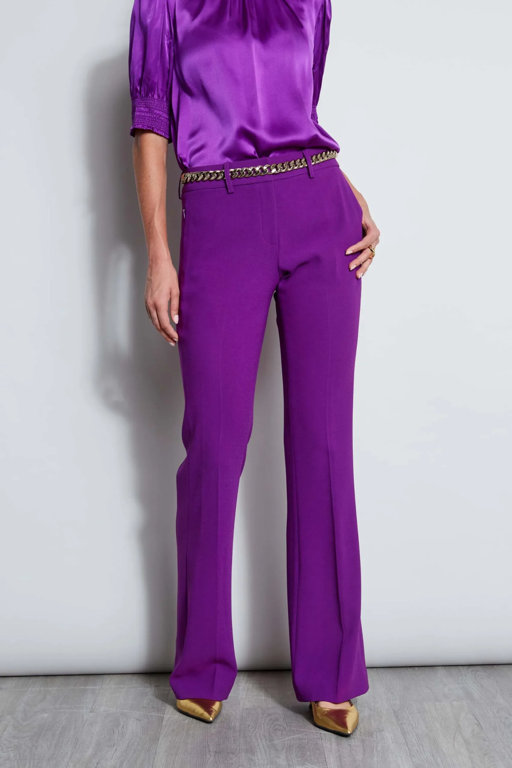 We chose our favorite Fluid Crepe for our best-selling modern fit and flare pant. Incredibly flattering, it mixes elegance and style with a touch of boldness. Get ready for the compliments. Elie Tahari Exclusive Fit u0026amp; Flare tailored dress pant in Fluid Crepe with front zip closure u0026amp; belt loops 70% Triacetate, 30% Polyester High Rise, Boot Cut; Runs true to size. Model is 5’9″ and wearing size 2 Measurements: Front Rise 9.8″L, Inseam 34.5″L (approx. length for a size 28) Dry Clean Only Imported Style #: E2087204