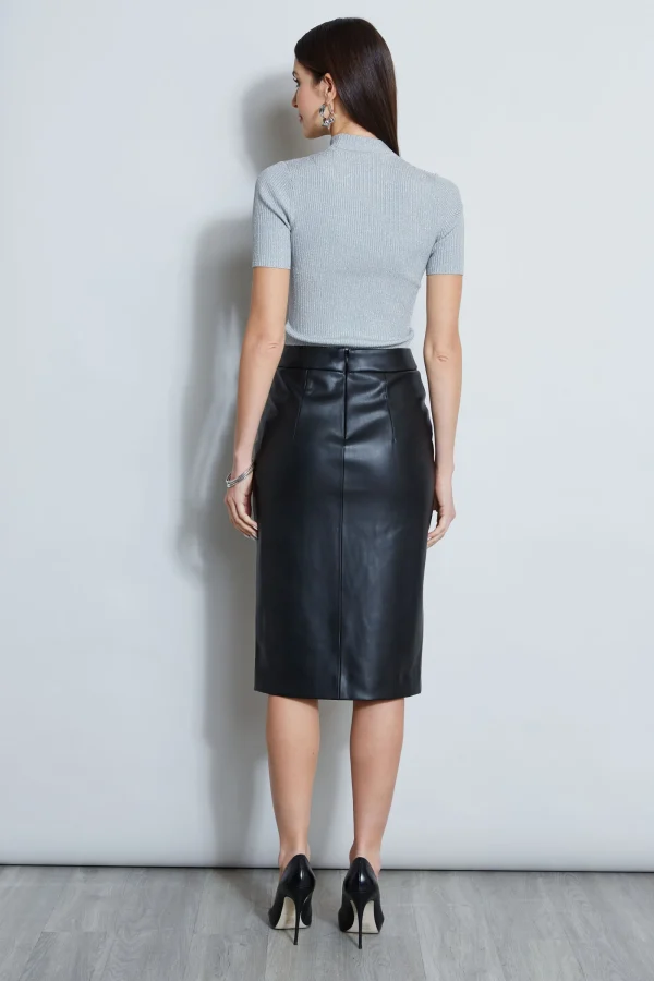 Elie loves the cool factor of our Vegan Leather Pencil Skirt. Crafted in soft-touch vegan leather, it features an ultra-…
