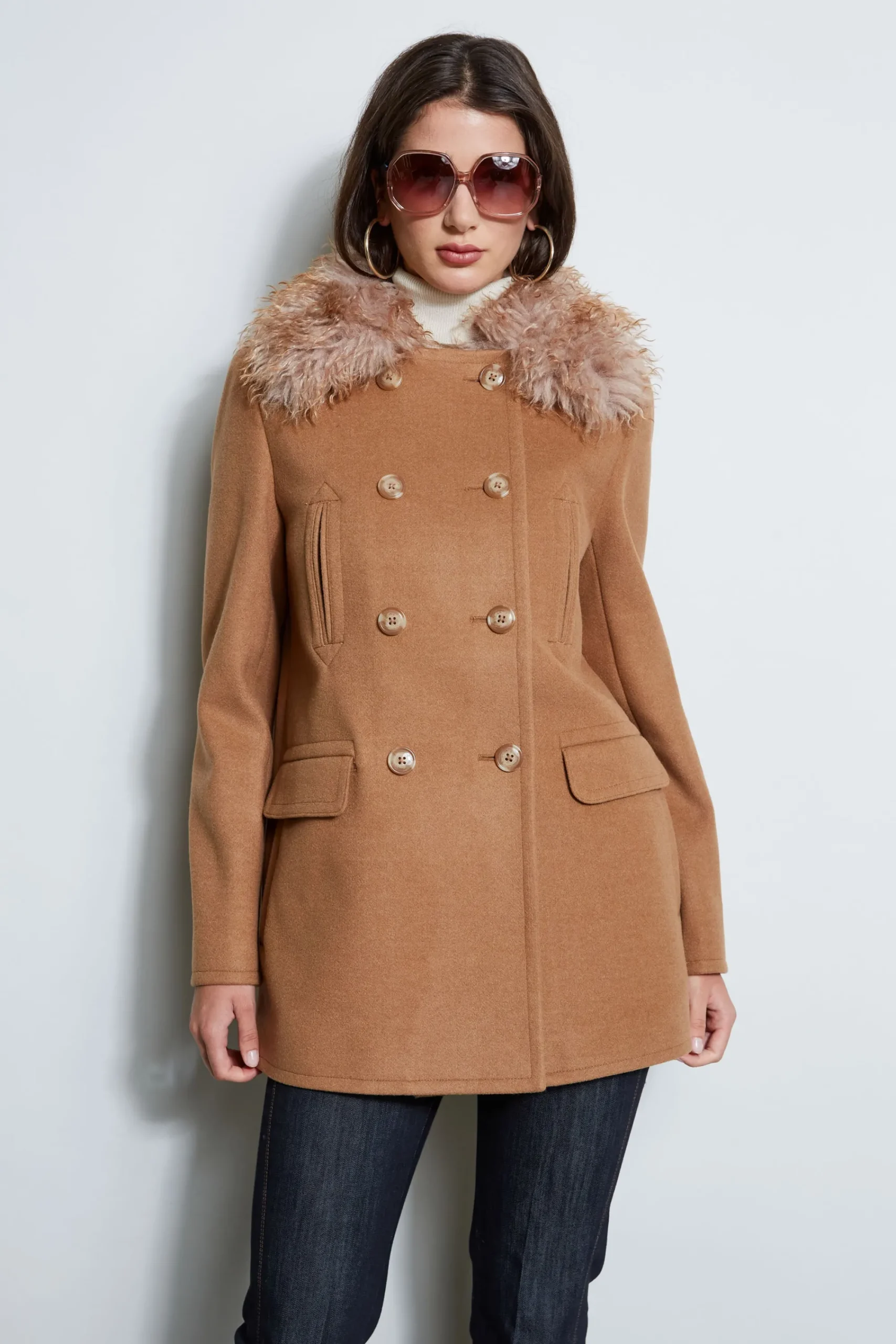 Elie Tahari Coats-Faux Fur Collar Peacoat