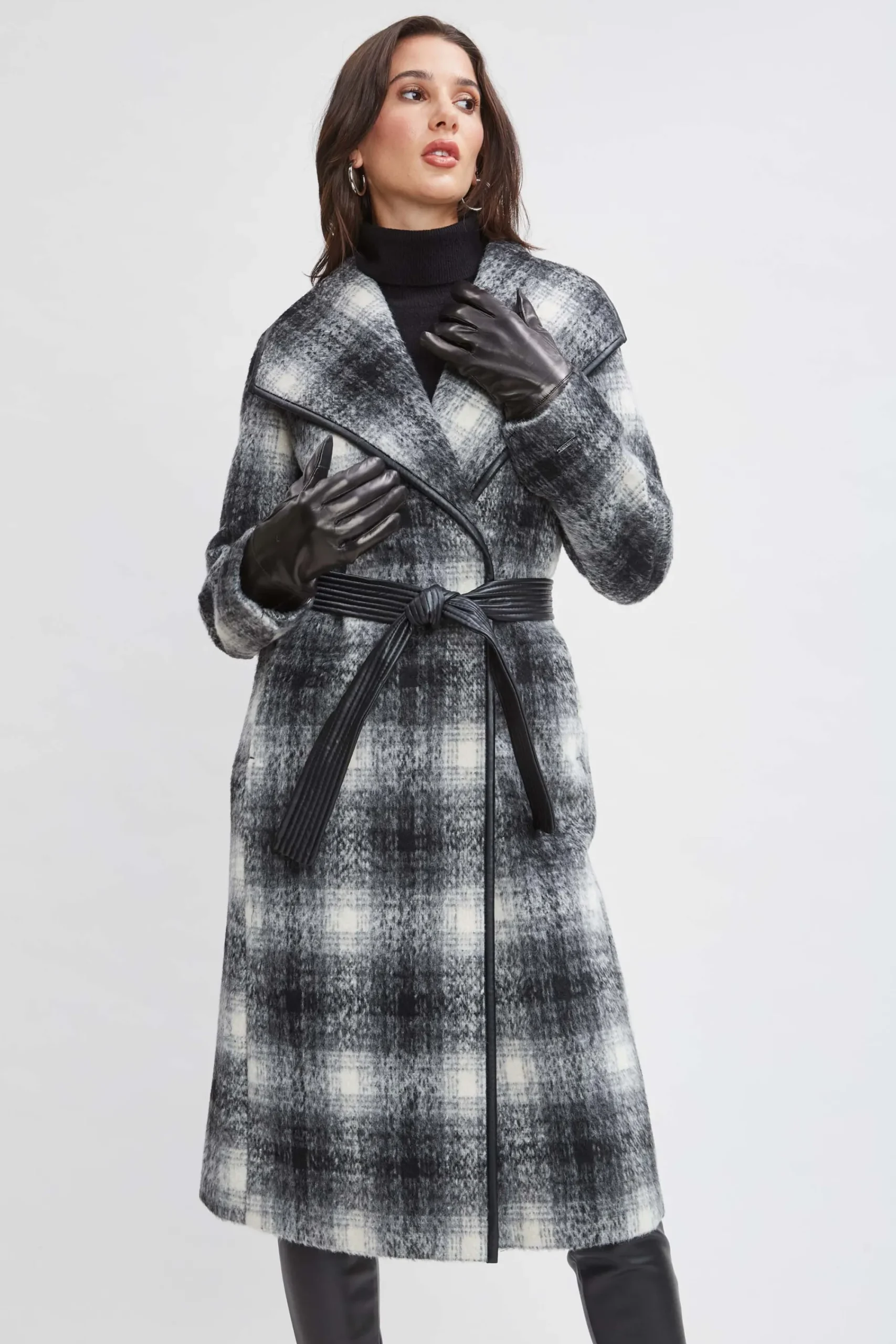 Make a statement with Fall ‘s plaid trend in our Tahari Wool Plaid Wrap Coat. Featuring a Lush wing lapel, vegan leather…