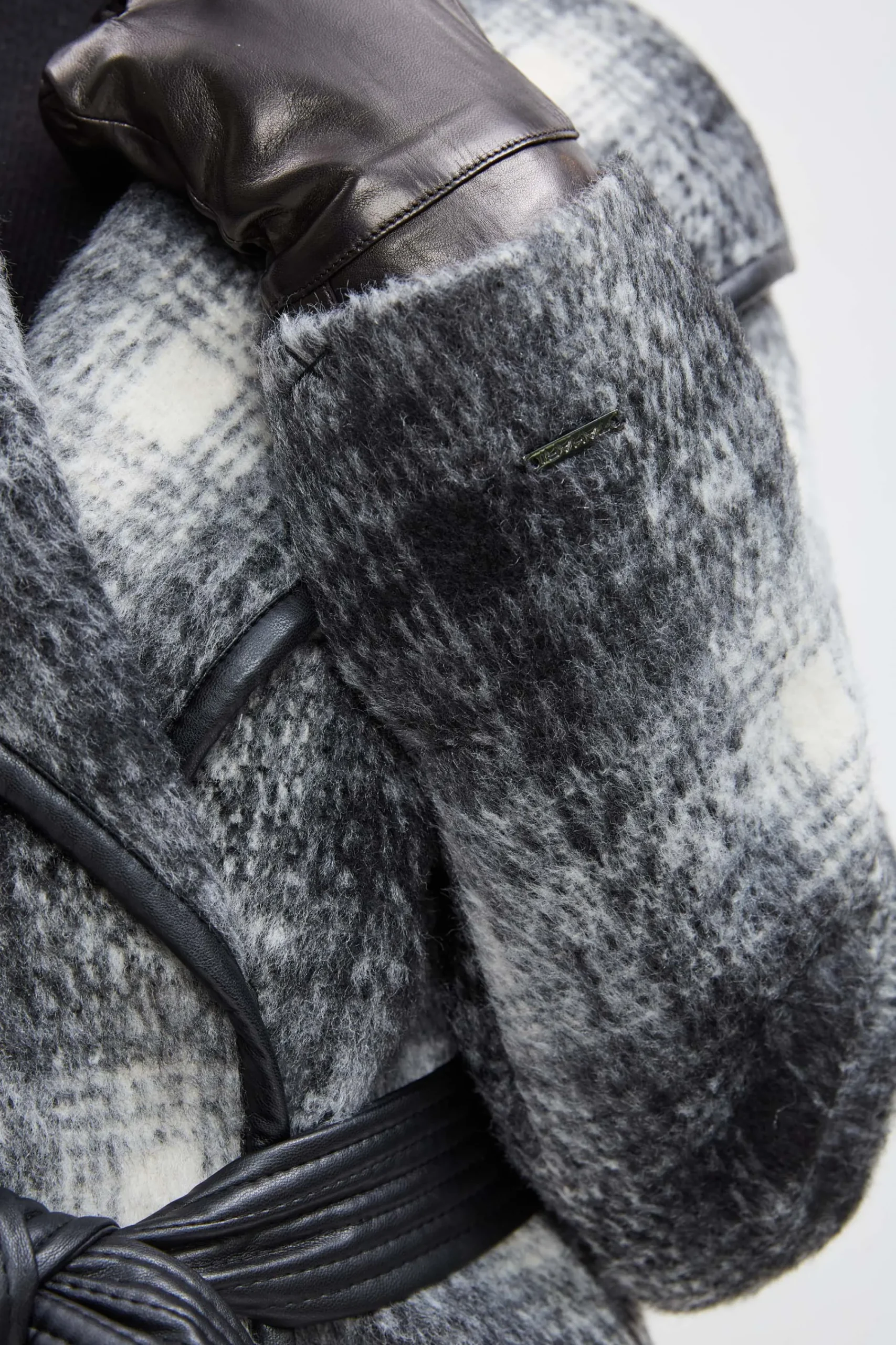 Elie Tahari Coats-Tahari Plaid Vegan Trim Wrap Coat