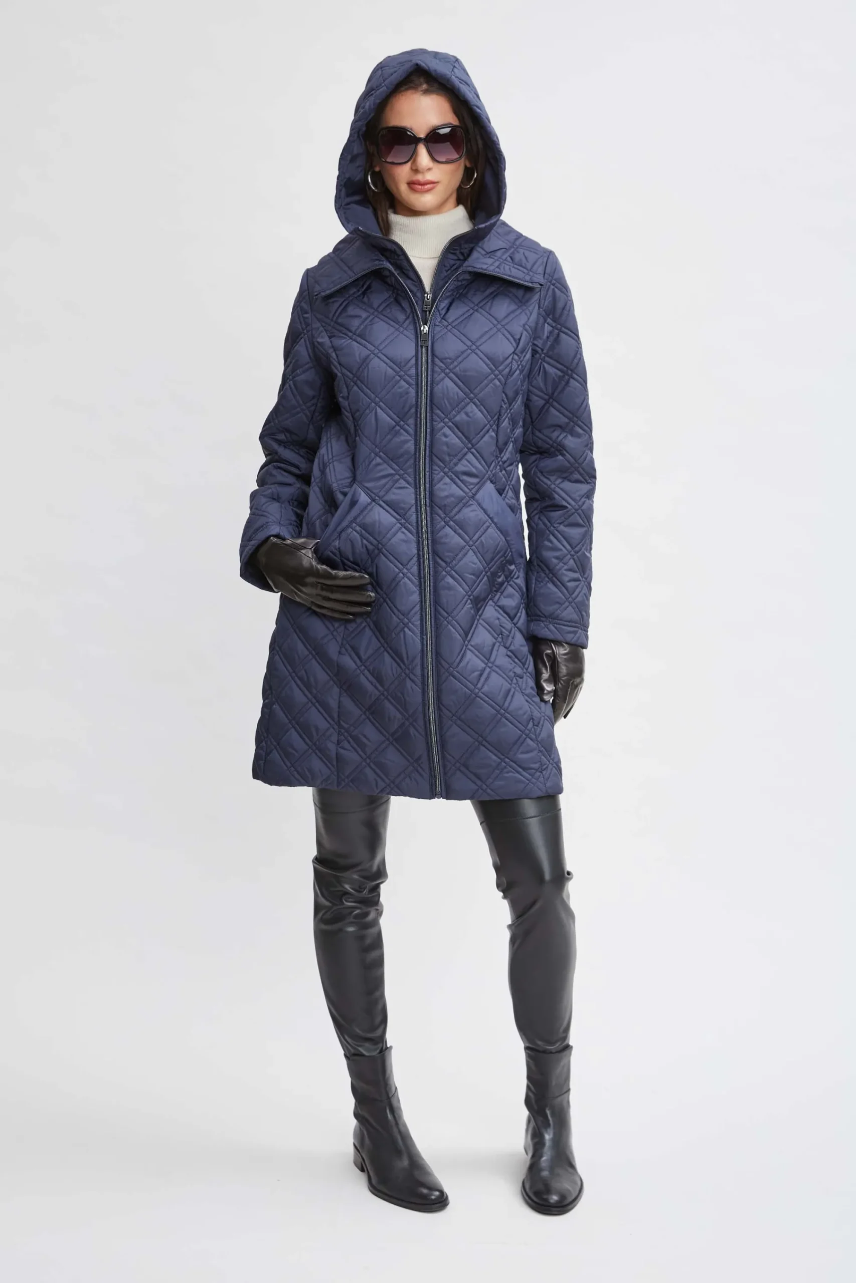 Functional u0026amp; effortlessly chic, the intricate quilted pattern of the polyester fabric adds texture to this flattering puffer coat that features a double layered silhouette and zip from closer. Layered over a sweater or dressed down with denim, this coat puts the fashion in function. Lightweight Mid Length Puffer Coat with quilted stitching Inner Shell u0026amp; Fill: 100% Polyester Runs true to Size Model is 5’9″ and wearing size S Dry Clean Only Imported Style #: 124001278