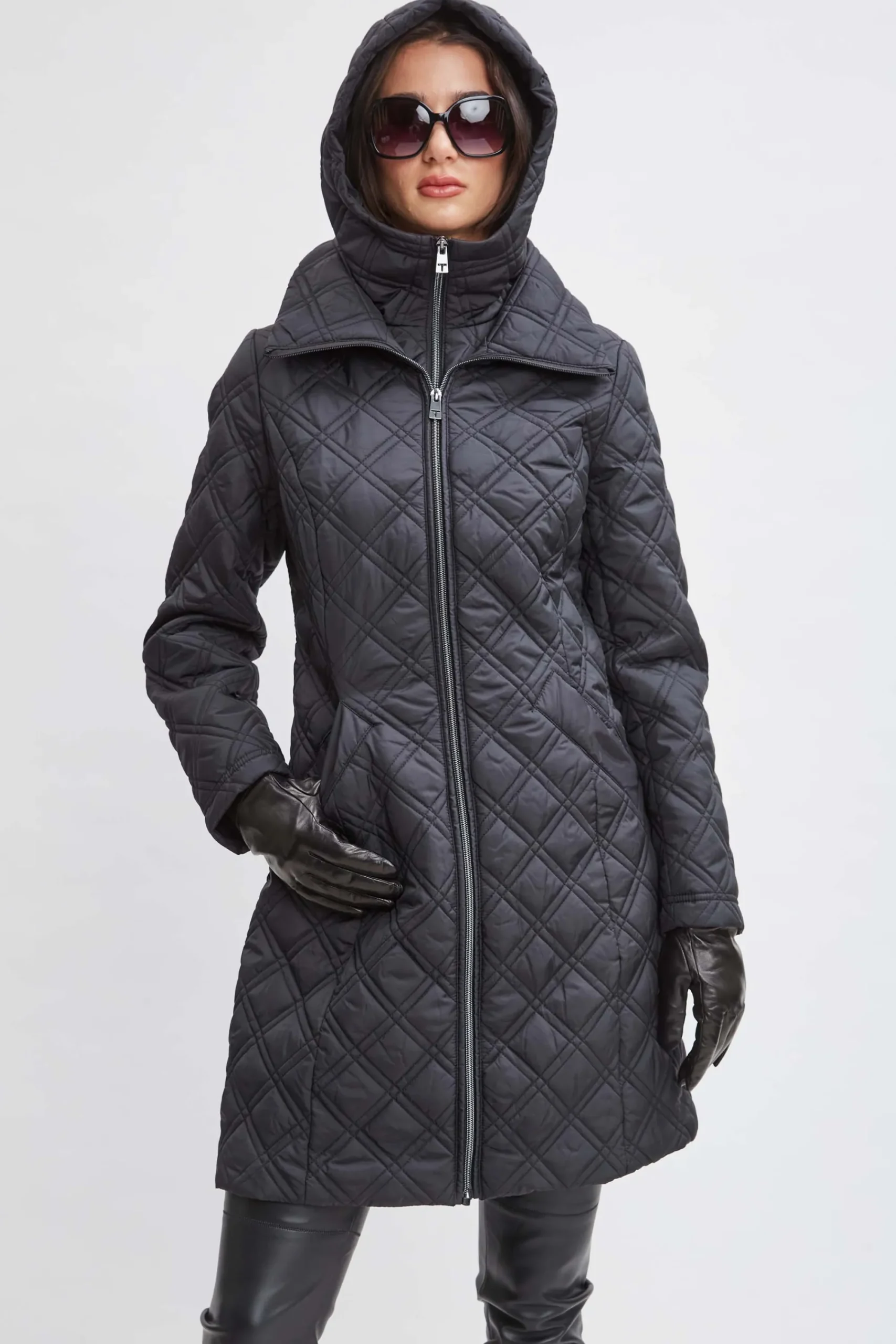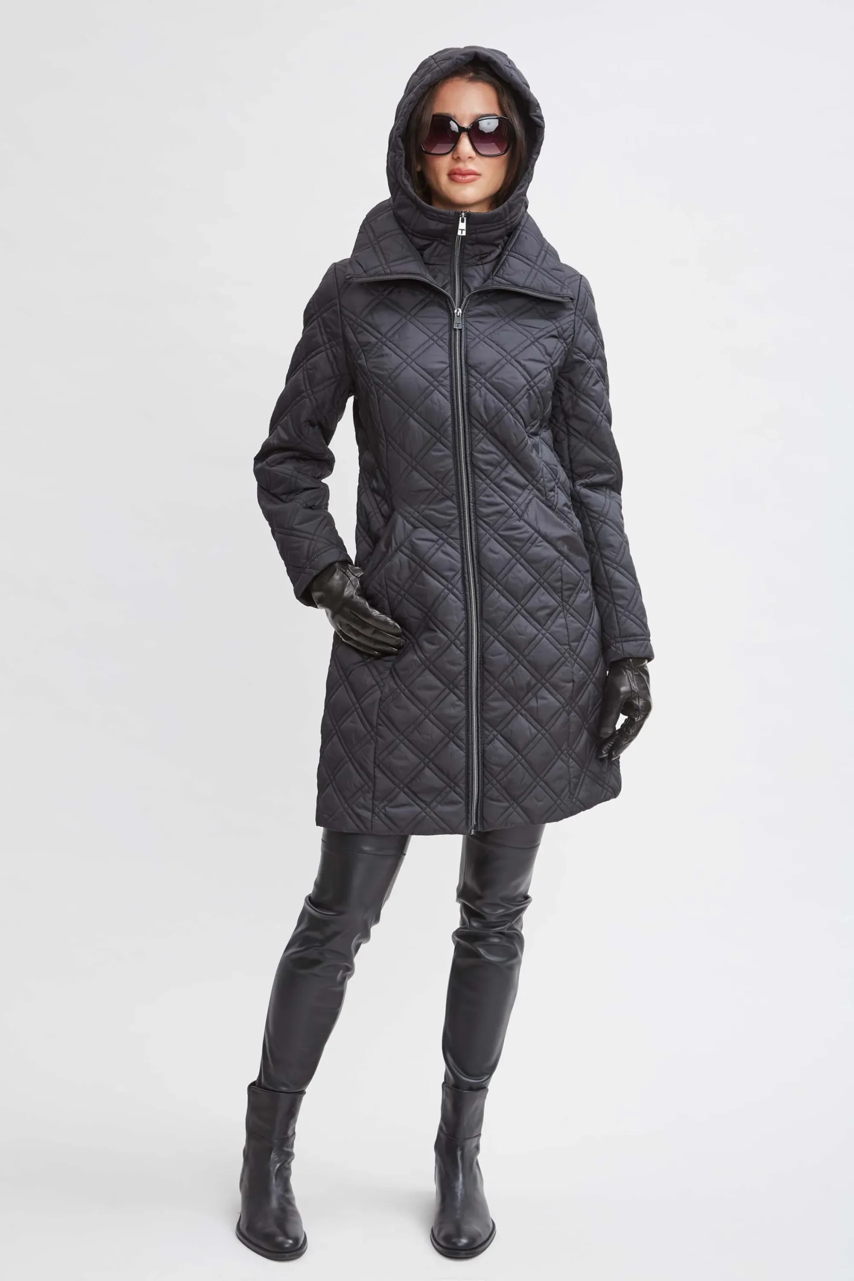 Functional u0026amp; effortlessly chic, the intricate quilted pattern of the polyester fabric adds texture to this flattering puffer coat that features a double layered silhouette and zip from closer. Layered over a sweater or dressed down with denim, this coat puts the fashion in function. Lightweight Mid Length Puffer Coat with quilted stitching Inner Shell u0026amp; Fill: 100% Polyester Runs true to Size Model is 5’9″ and wearing size S Dry Clean Only Imported Style #: 124001278