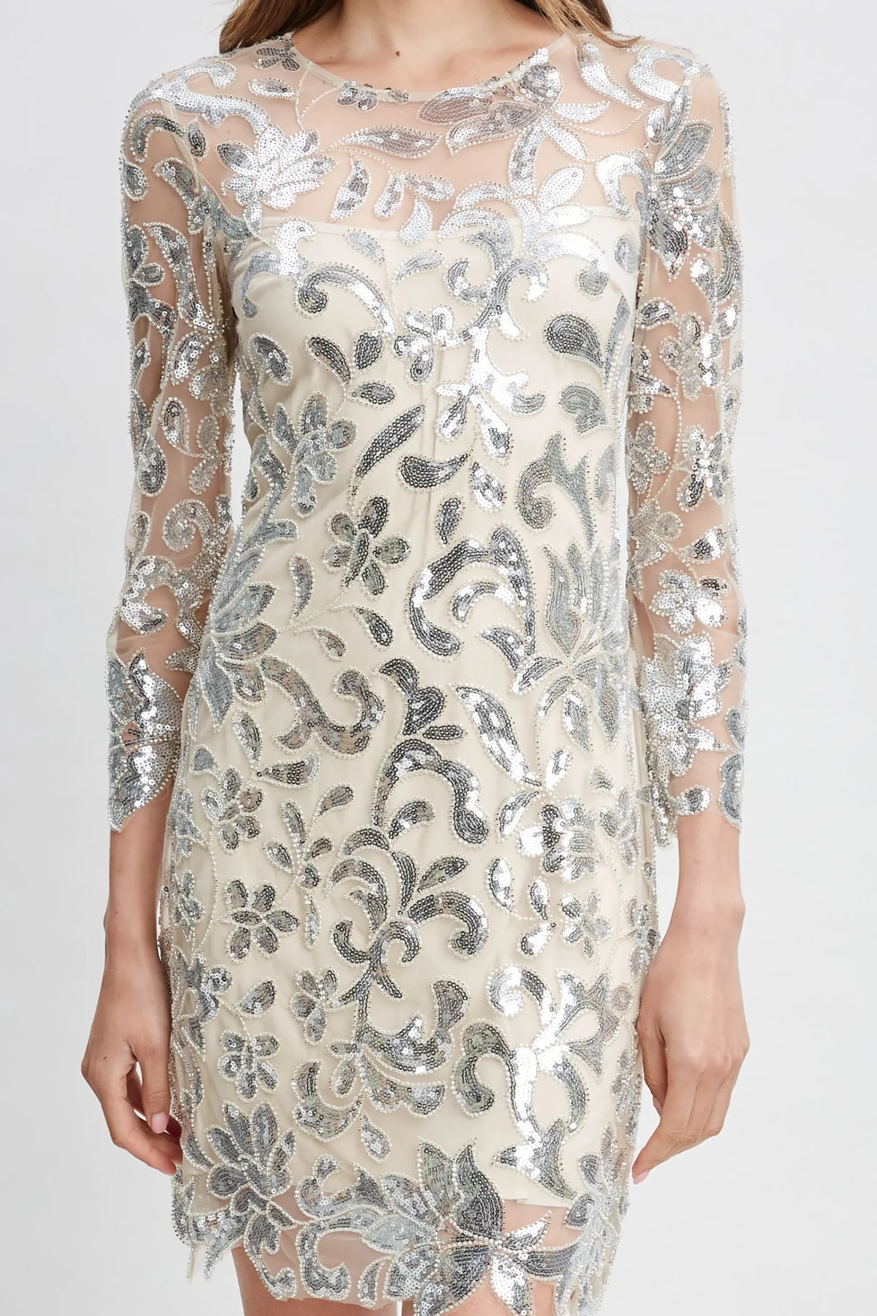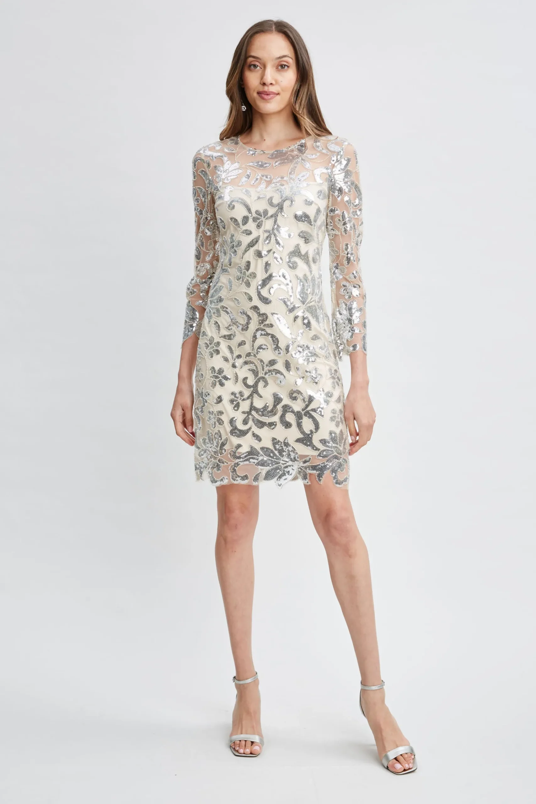 Elie Tahari Dresses & Jumpsuits-Floral Sequin Long Sleeve Dress