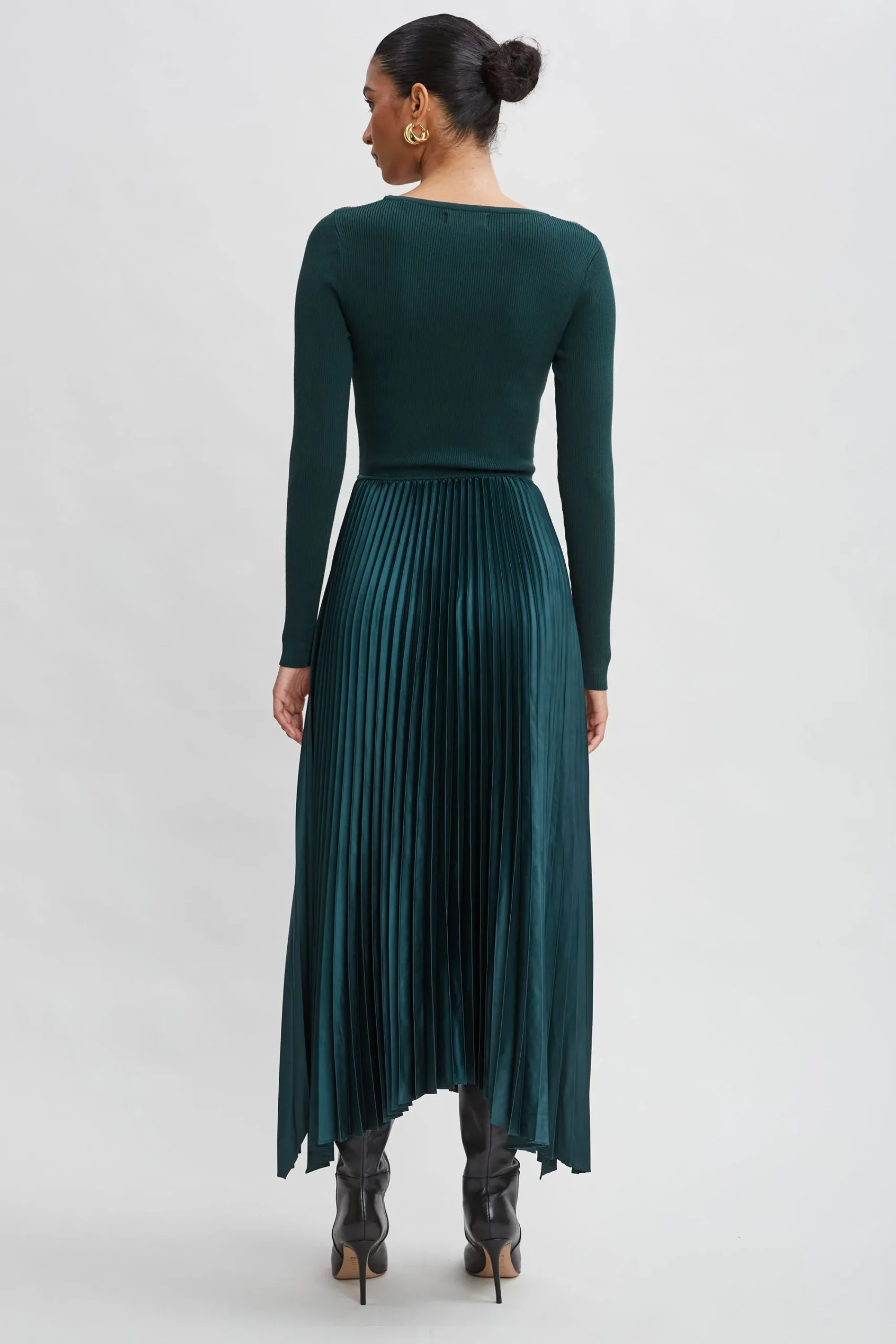 Our effortless Pleated Midi Dress has a distinct modern vibe. The Long Sleeve viscose sweater knit bodice combines with …