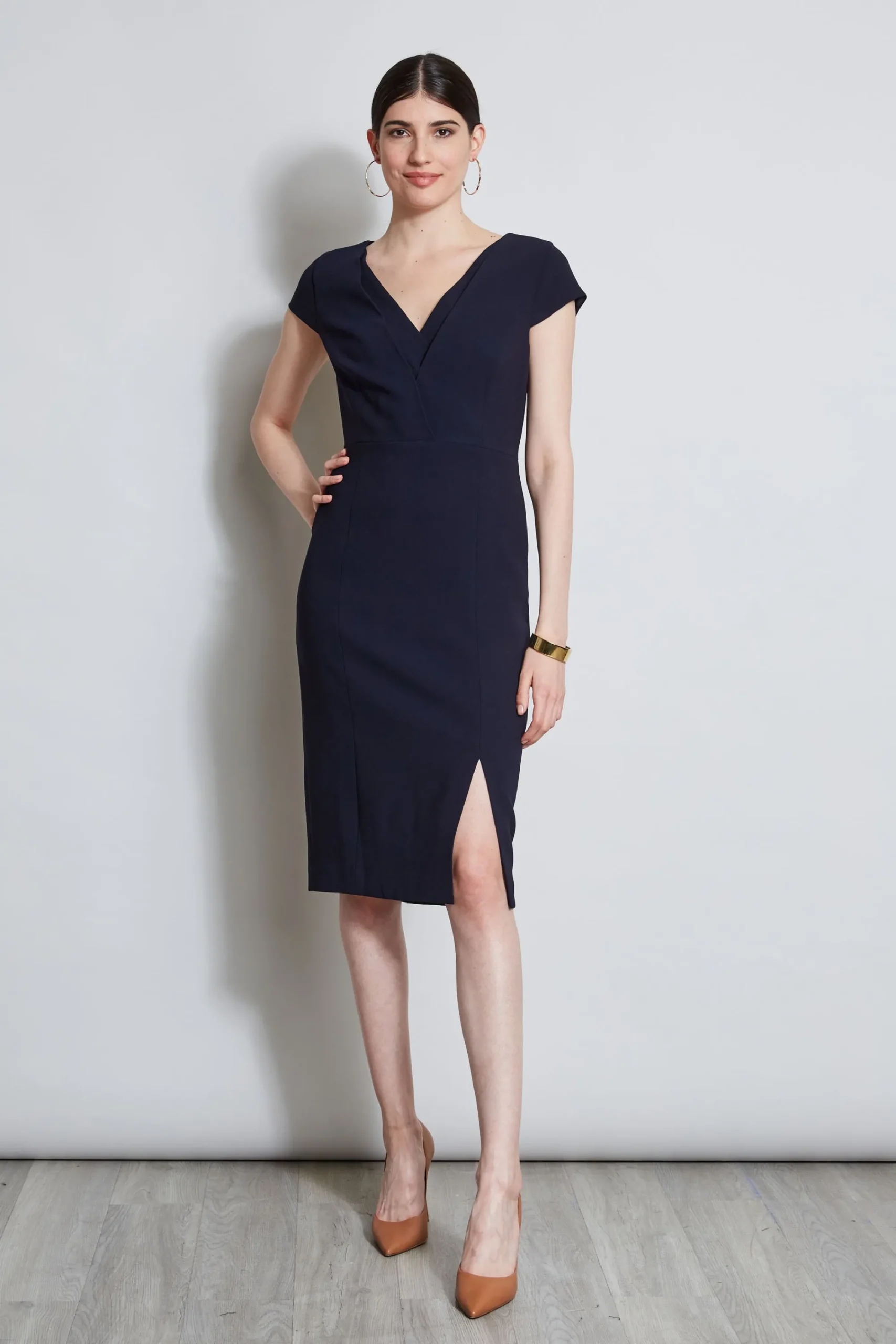 Elie’s take on the season’s must have sheath dress. The body contouring lines accent its modern slit u0026amp; double layer v-neckline. Designed in our signature Fluid Crepe, it flatters every curve. This dress is destined to become a favorite for desk to dinner. Elie Tahari Exclusive Bodycon Fluid Crepe Dress with Double Layer V-Neckline 70% Triacetate, 30% Polyester Runs true to size. Model is 5’9″ and wearing size 2 Length From Shoulder to Hem: Back 42″L, Sleeve 4.24 (approx. length for size 6) Dry Clean Only Imported Style #: E2087604