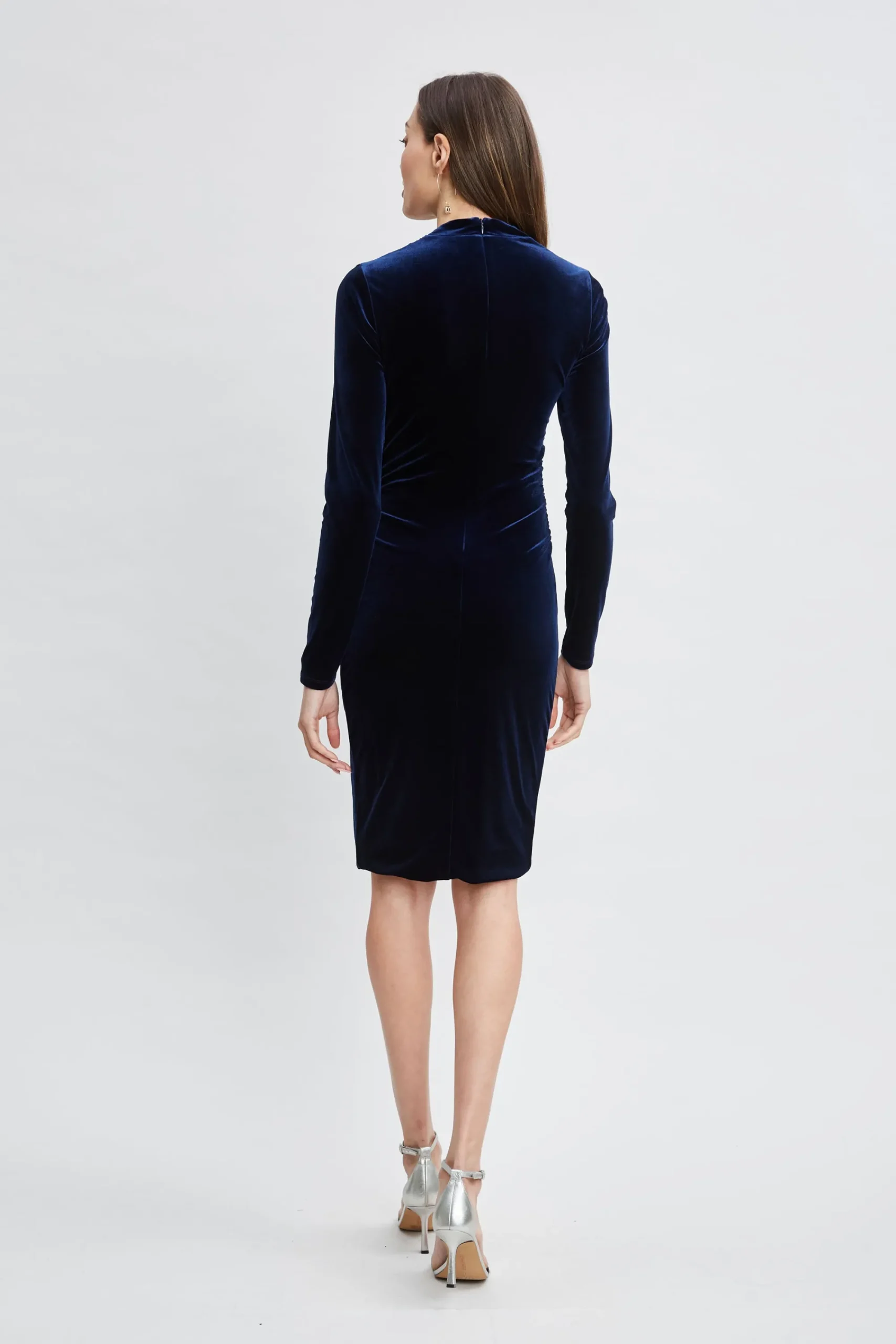 Go glam in Stretch Velvet. Timeless design meets impeccable quality in our Velvet Asymmetric Neckline dress. Figure skimming u0026amp; decidedly cool, the ruching throughout make it ultra-flattering while the rich patina makes it the perfect occasion dress. Elie Tahari Exclusive Long Sleeve Stretch Velvet Asymmetrical Neckline Dress with Ruching 90% Polyester; 10% Elastane Runs true to Size Model is 5’9″ and wearing size S Length From Shoulder to Hem: Back 39.9″L, Sleeve 26″L (approx. length for size S) Dry Clean Only Imported Style #: ER021604