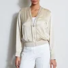 Modern and edgy, the Silk Chiffon sleeves u0026amp; rib cuff create a decided cool factor. By mixing luxe Fluid Crepe w…
