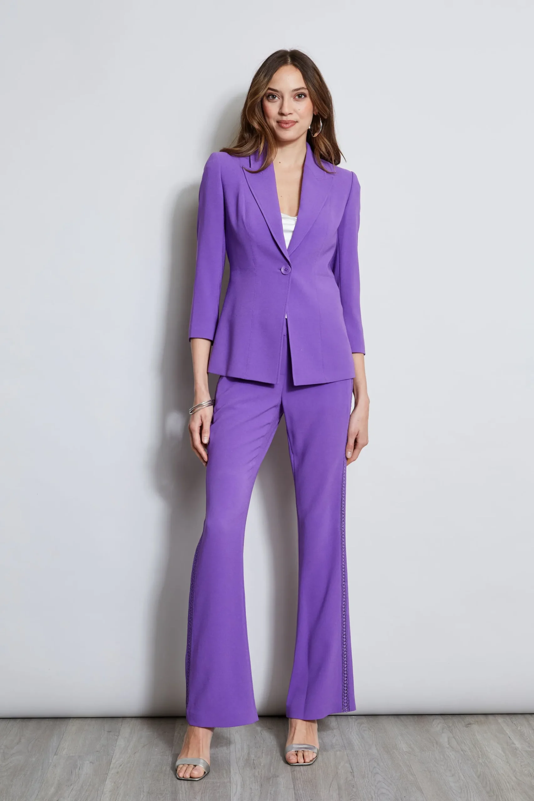Elie chose his favorite fluid crepe for his modern take on a fitted blazer. The single breasted peaked lapels, stitched seams and three-quarter sleeves lend the cool factor. Wear it suited with its matching pant of pair it with white jeans or cotton slim pants for another expression Elie Tahari Exclusive Single-Button Fluid Crepe Blazer with sleeves 70% Triacetate, 30% Polyester Runs true to size. Model is 5’9″ and wearing size 2 Length From Shoulder to Hem: Back 25.25″L, Sleeve 20.25″L (approx. length for size 6) Dry Clean Only Imported Style #: E5087104