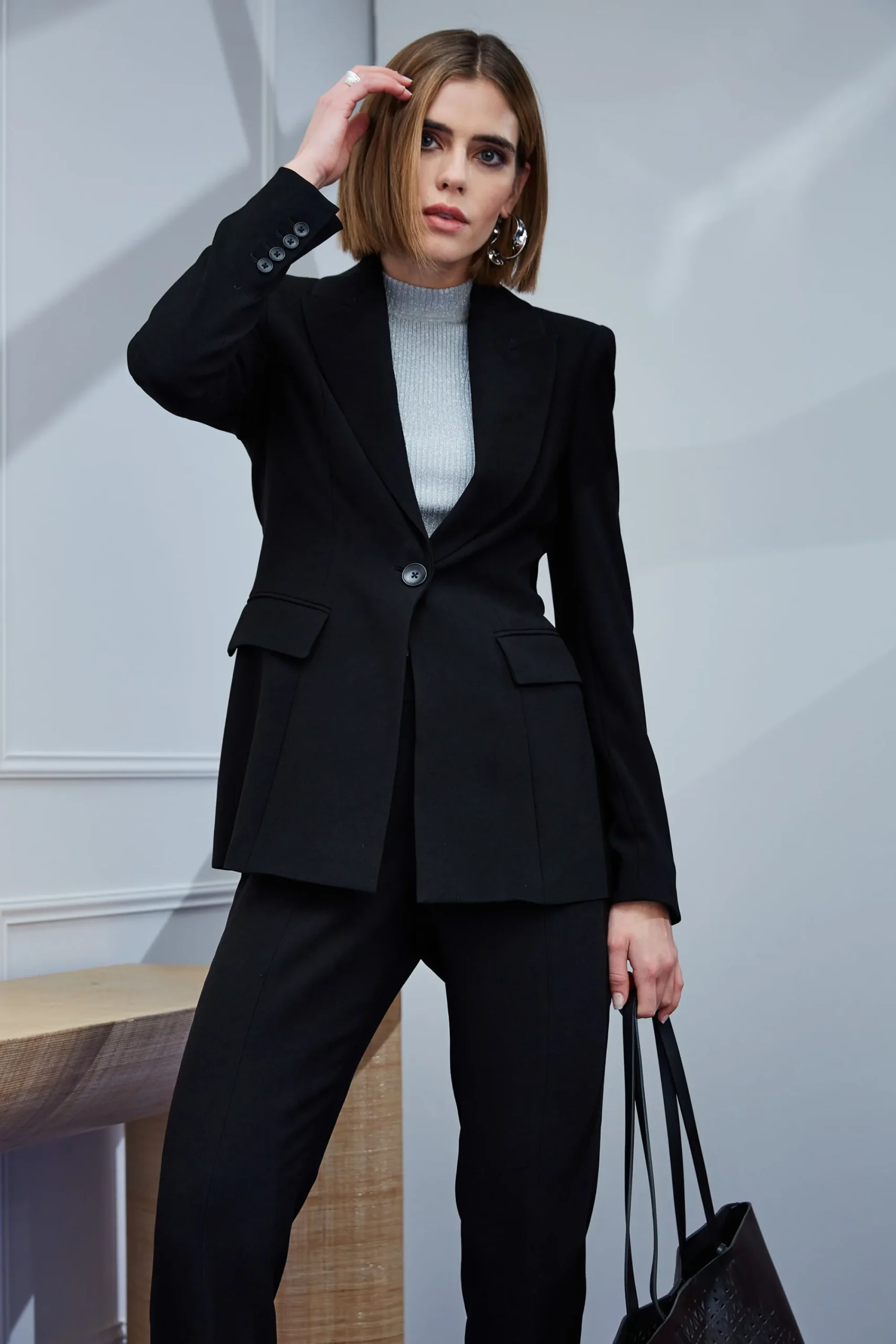 Elie’s signature fitted blazer is chic and polished. Single breasted with peaked lapels and an impeccable cut, it has th…