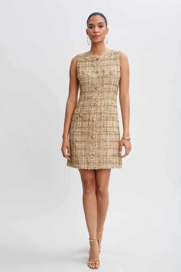 Elie Tahari Short Dresses | Dresses & Jumpsuits-Metallic Tweed Button Dress