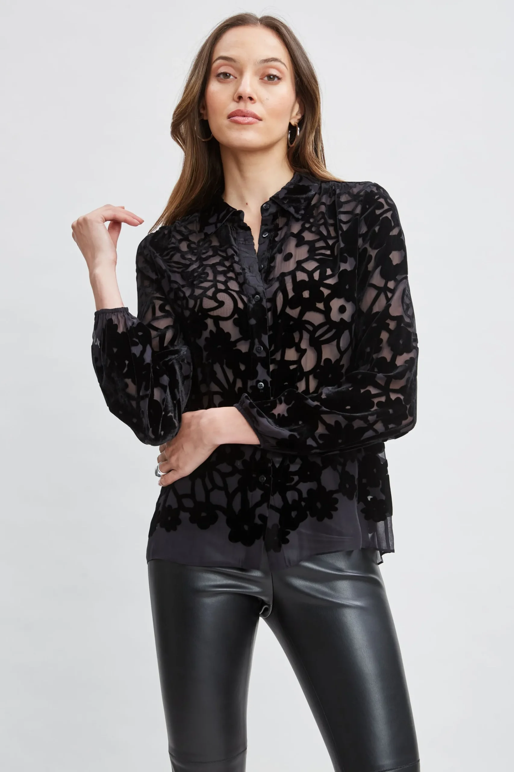 Elie Tahari Tops & Sweaters-Burnout Silk Velvet Burnout Shirt