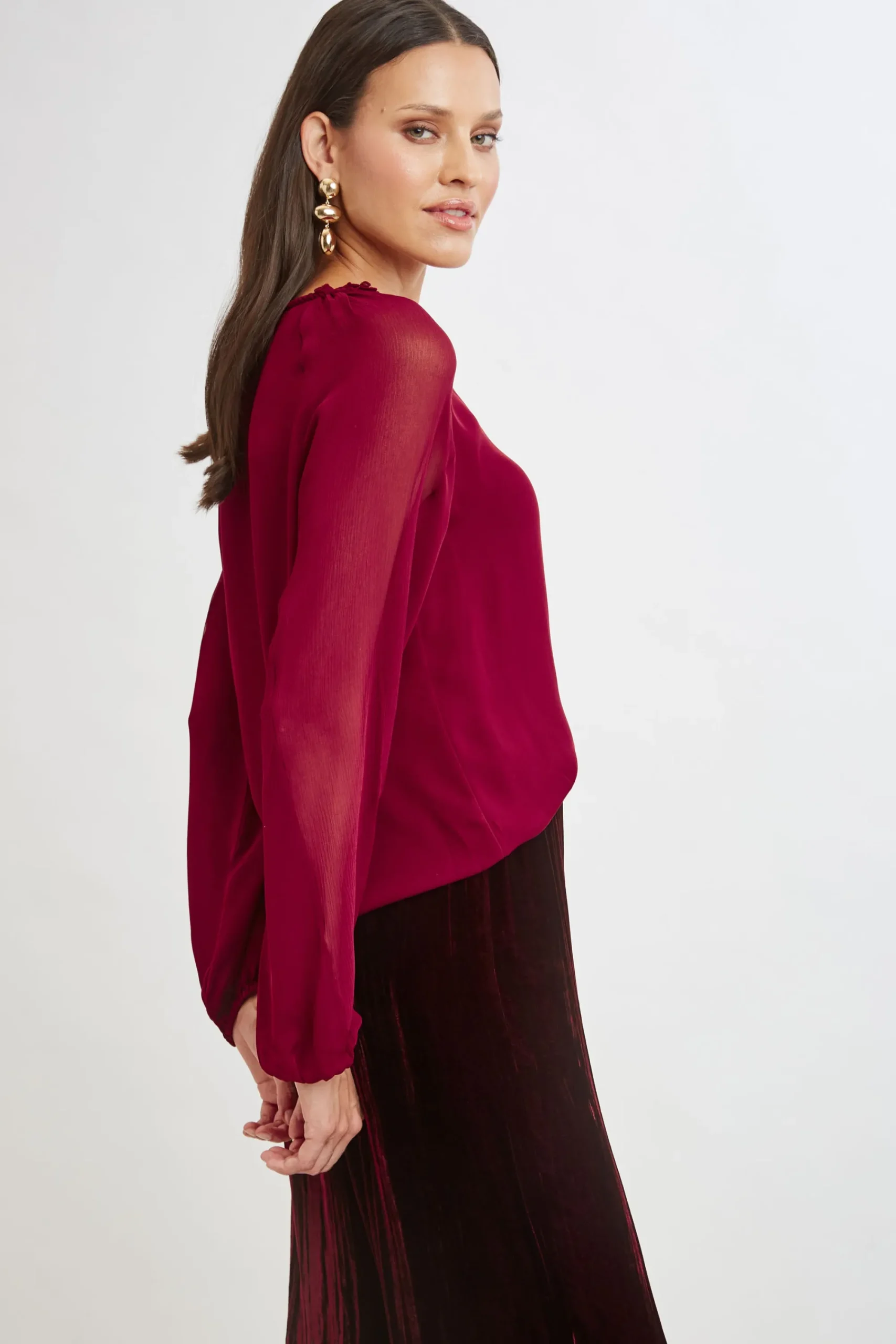 Embrace effortless style with our Silk Georgette Shirt, featuring inlays of transparent silk chiffon on the sleeves and a braided and ruffle detail neckline that’s fastened with a button. With an easy fit and chic appeal, this shirt transitions seamlessly from day to night. Limited Edition 50th Anniversary Collection Elie Tahari Exclusive Silk Georgette Long Sleeve Shirt with Sheer Sleeves u0026amp; Keyhole Neckline 100% Silk Runs true to Size Length From Waist to Hem: Back 25″L, Sleeve 32.5″L (approx. length for size S) Model is 5’9″ and wearing size XS Dry Clean Only Imported Style #: E900N504
