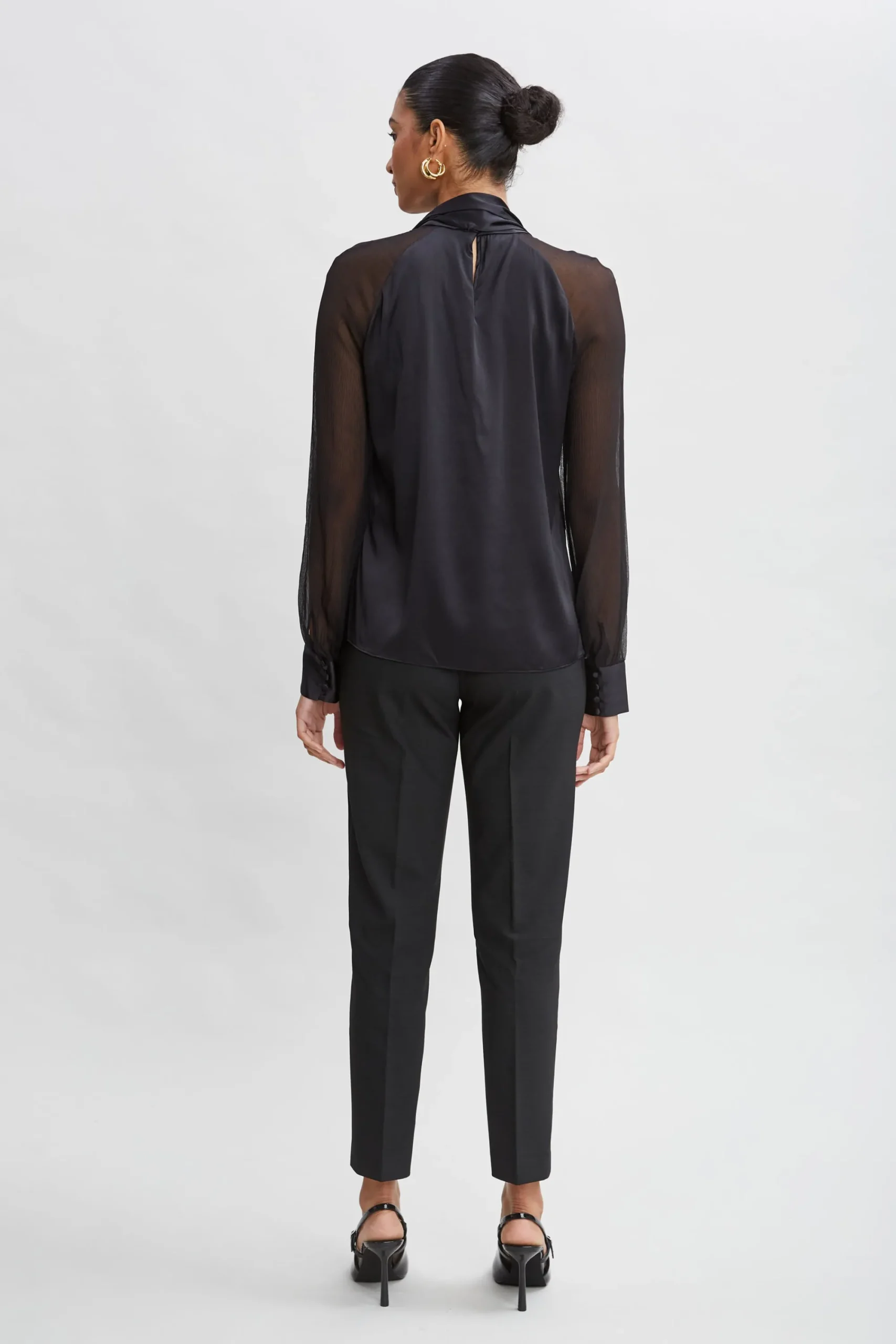 It’s all in the details! Chic u0026amp; modern, the Tie neck u0026amp; transparent chiffon sleeves of our luxe Silk Sa…