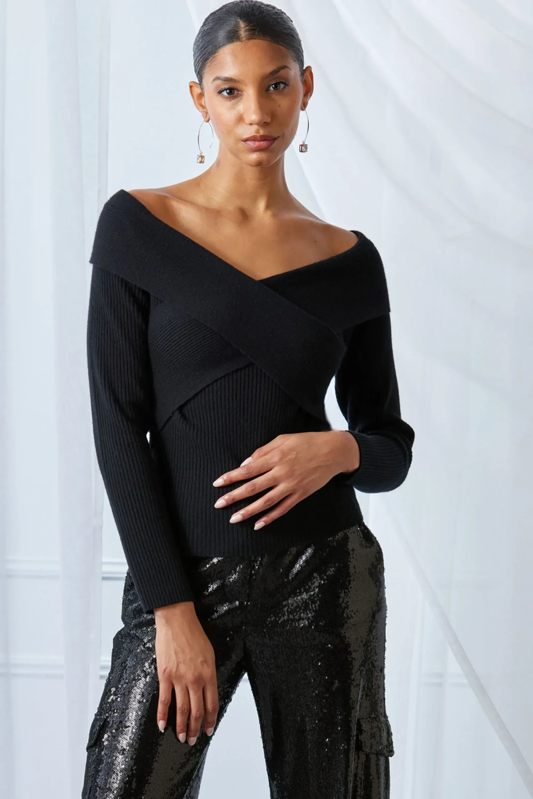 Cool u0026amp; unique, our off-shoulder sweater is a must-have in your Fall wardrobe. Designed in luxe Cashmere Wool, the edgy rib knit crossover silhouette makes this sweater unique. Perfect for day to night, dress it up with Satin or down with Vegan Leather. Elie Tahari Exclusive Cross Shoulder Sweater 70% Merino, 30% Cashmere Runs true to Size Model is 5’9″ and wearing size XS Dry Clean Only Imported Style #: E954X514