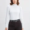 Timeless u0026amp; effortless, this knit is destined to become a favorite. Luxe Modal Jersey is draped in a body-skimming long sleeve shell that works under a blazer or on its own. The contour neckline u0026amp; pleat shoulder detailing make this knit an essential that you will reach for again and again. Elie Tahari Exclusive Long Sleeve Contour Neck Knit 95% Modal, 5% Elastane Runs true to size. Model is 5’9″ and wearing size S Length From Shoulder to Hem: Sleeve 23″L, Back 24.5″L (approx. length for size S) Dry Clean Only Imported Style #: EN56X504