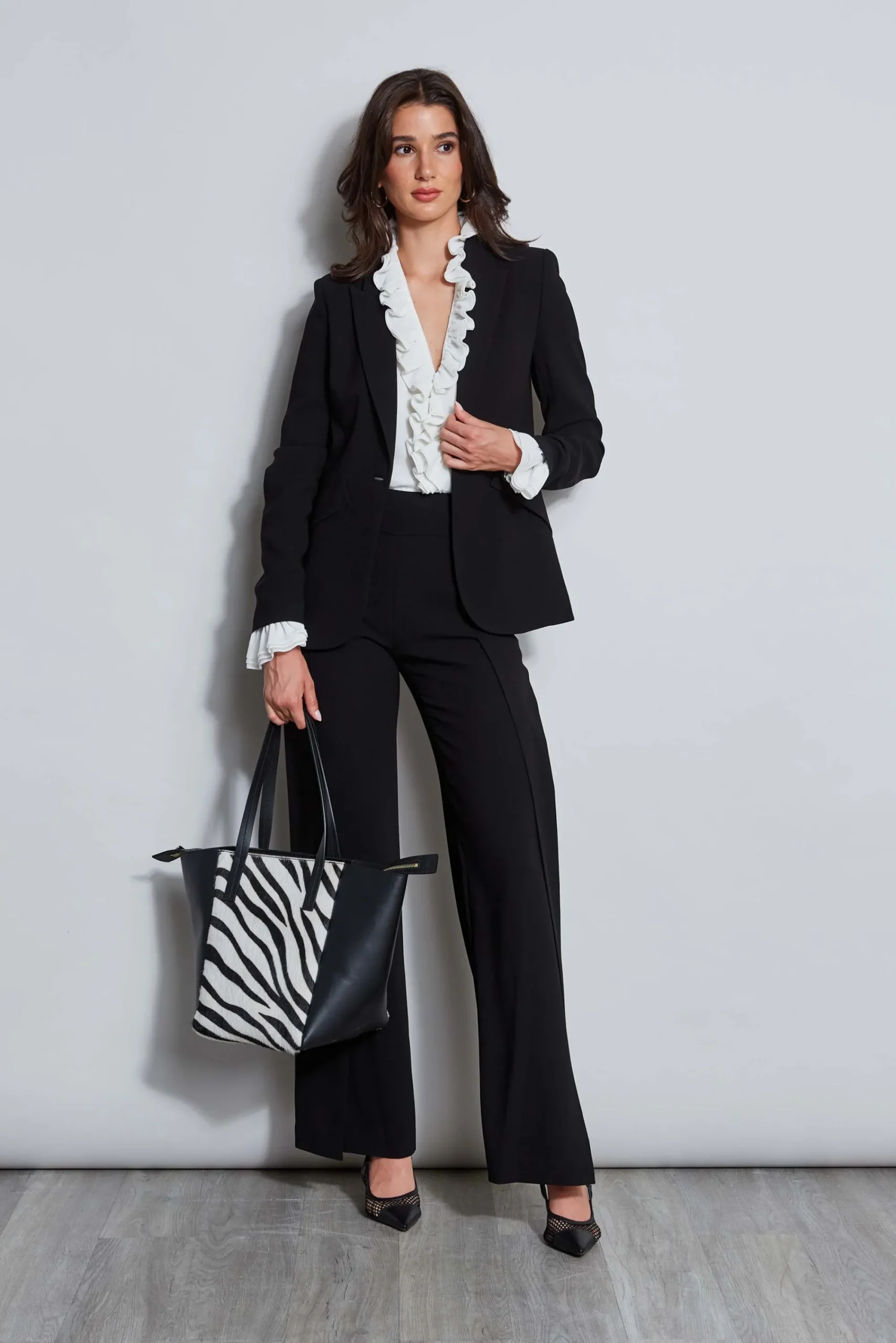 Our long sleeve Silk Georgette Blouson top is bordered in layers of delicate Silk Chiffon ruffles. The romantic expression makes it perfect for date nights and occasions. Elie Tahari Exclusive Long Sleeve Silk Ruffle Top with Chiffon Sleeves 100% Silk Relaxed Fit; Runs true to size. Model is 5’9″ and wearing size S Length From Shoulder to Hem: Back 21″ L, Sleeve 32″ L (approx. length for size S) Dry Clean Only Imported Style #: E810N504