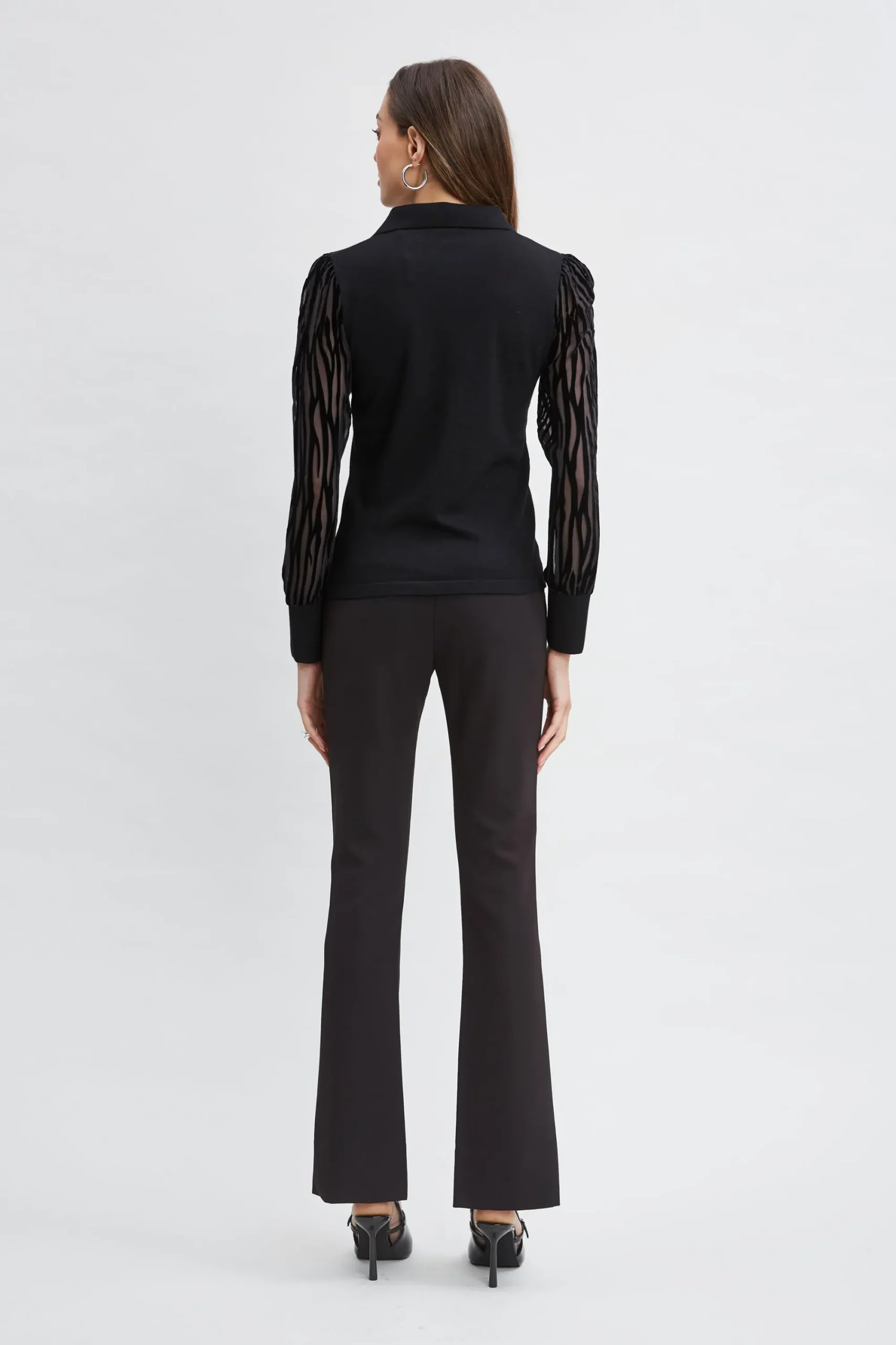 Elie Tahari Tops & Sweaters-Velvet Burnout Sleeve Polo Sweater
